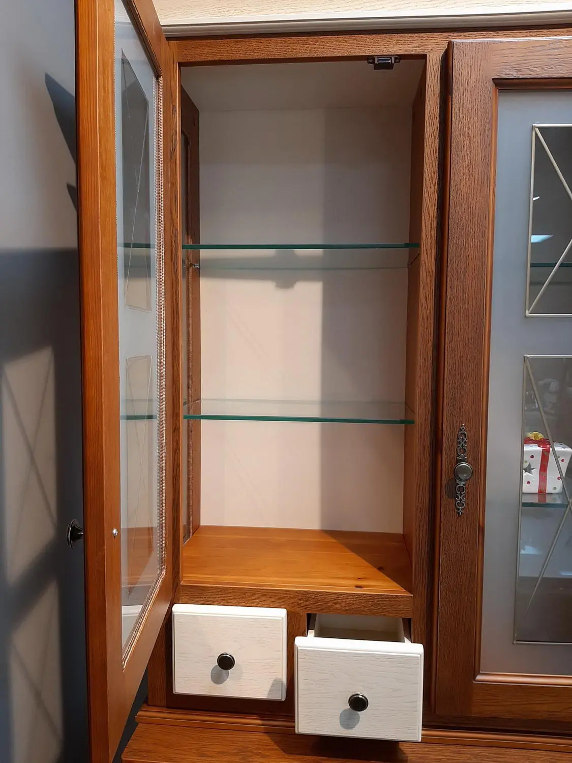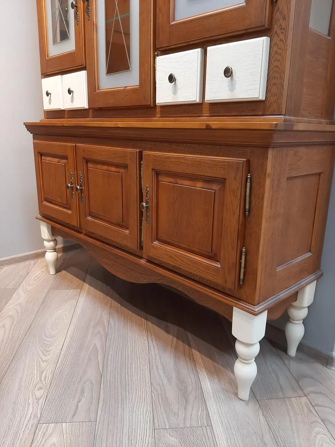 Цена указана за изделие в бесцветном лаке. На титульной фотографии цвет серванта - морин патина. Стоимость зависит от выбранного покрытия. При заказе мебели в составном цвете цена считается по более дорогому.