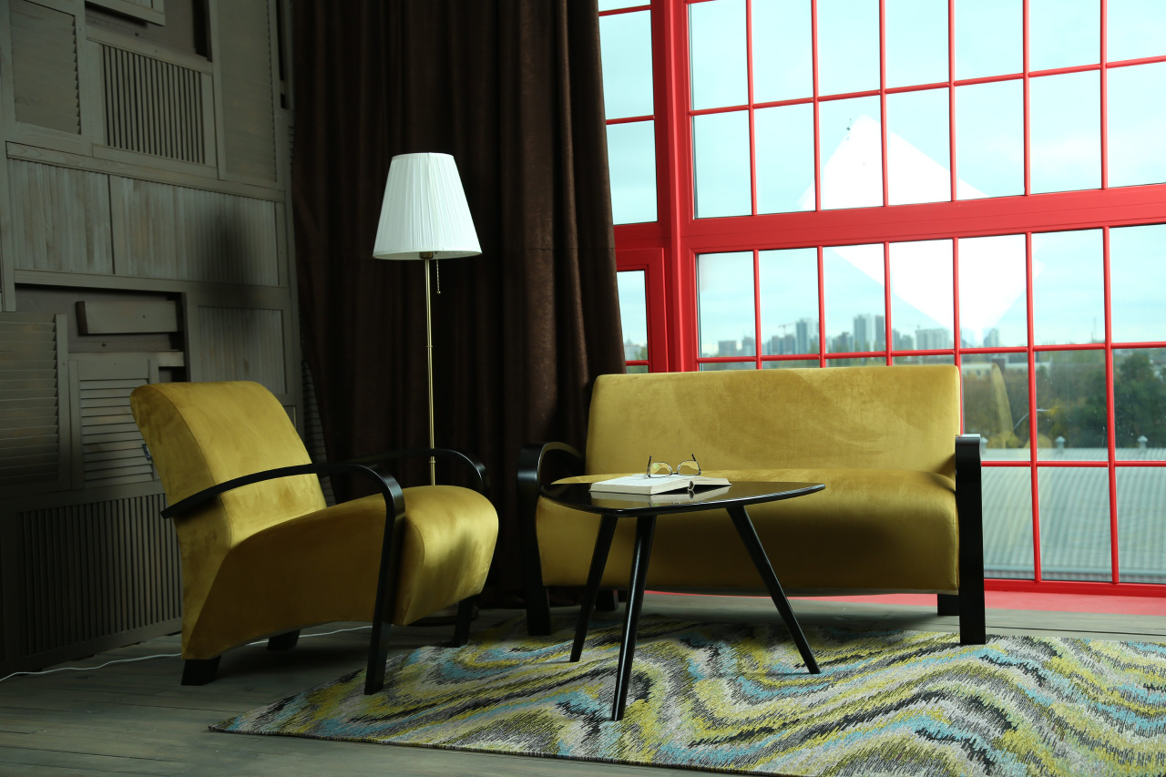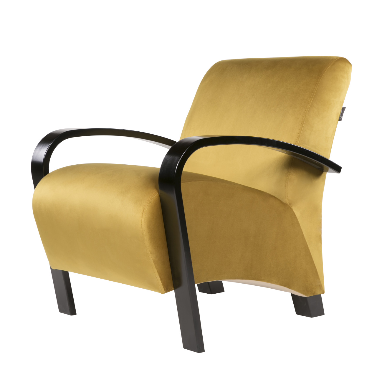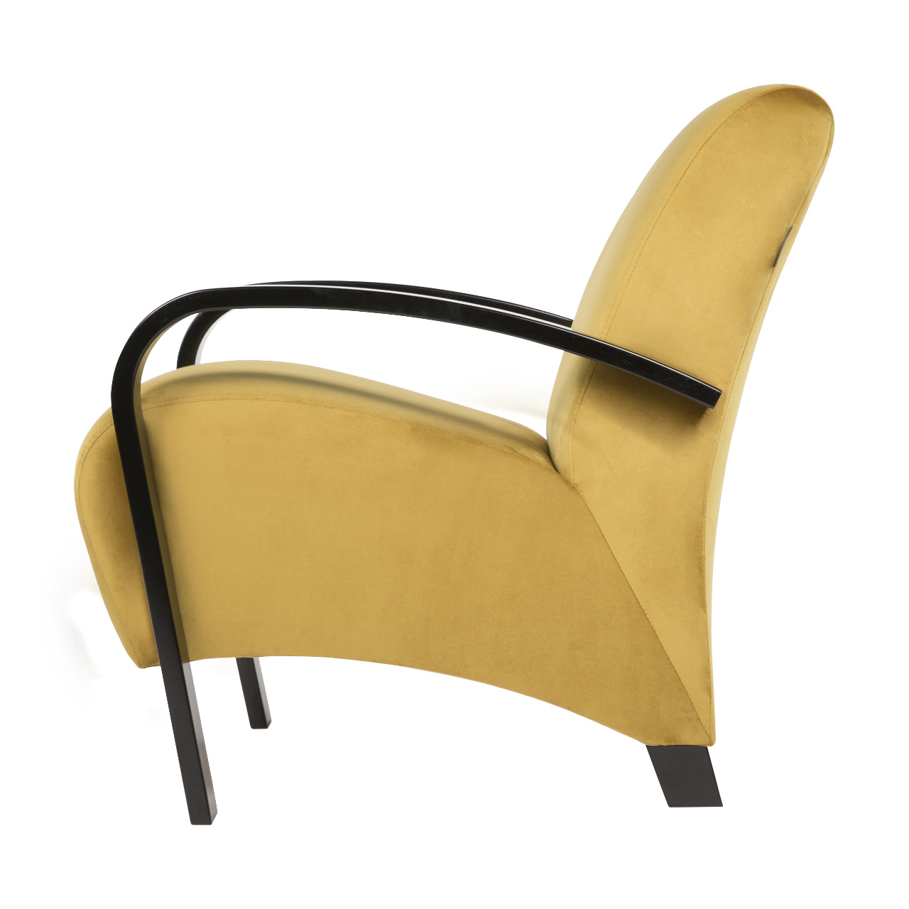 Кресло с тканевой обивкой цвета Охра и каркасом цвета Черный
