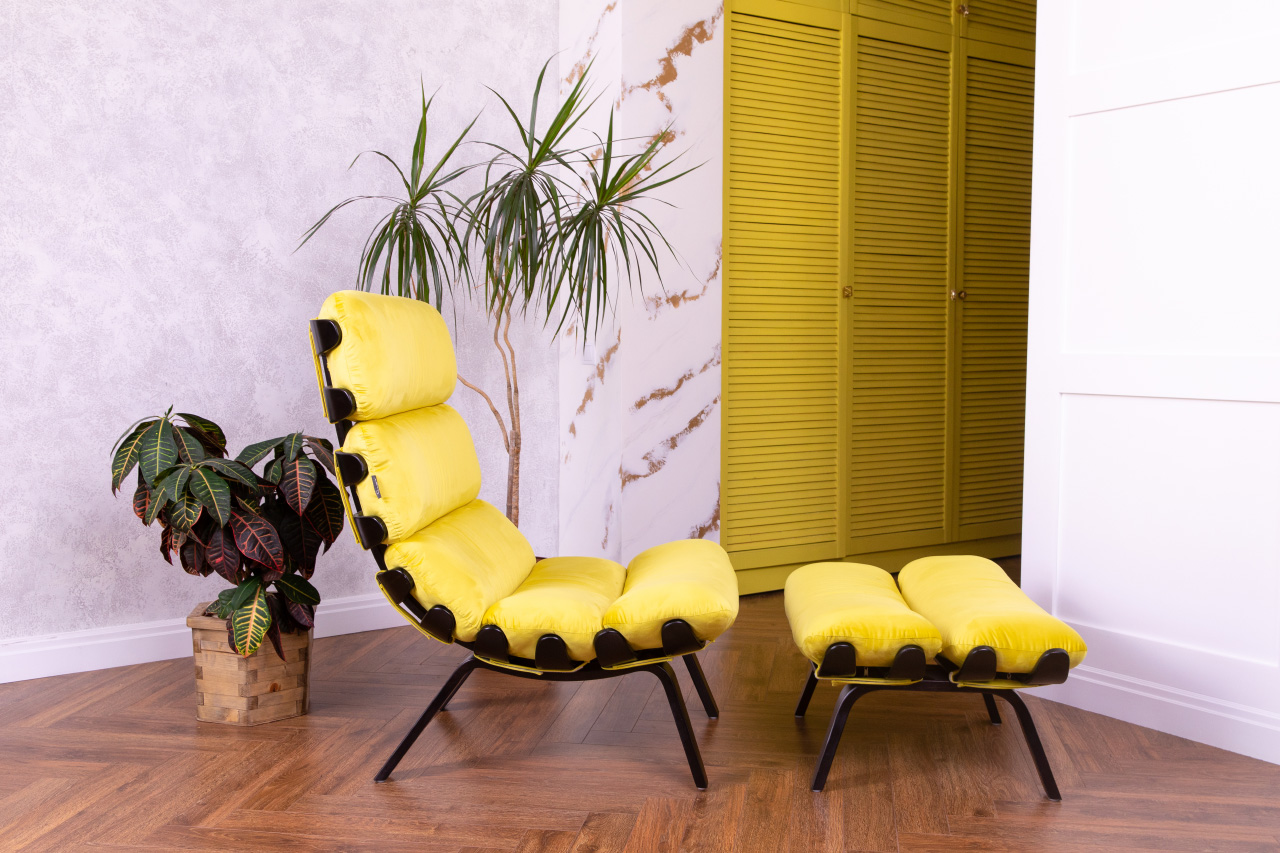 Кресло Ессей с обивкой из микровелюра цвета Желтый и каркасом цвета Чёрный
