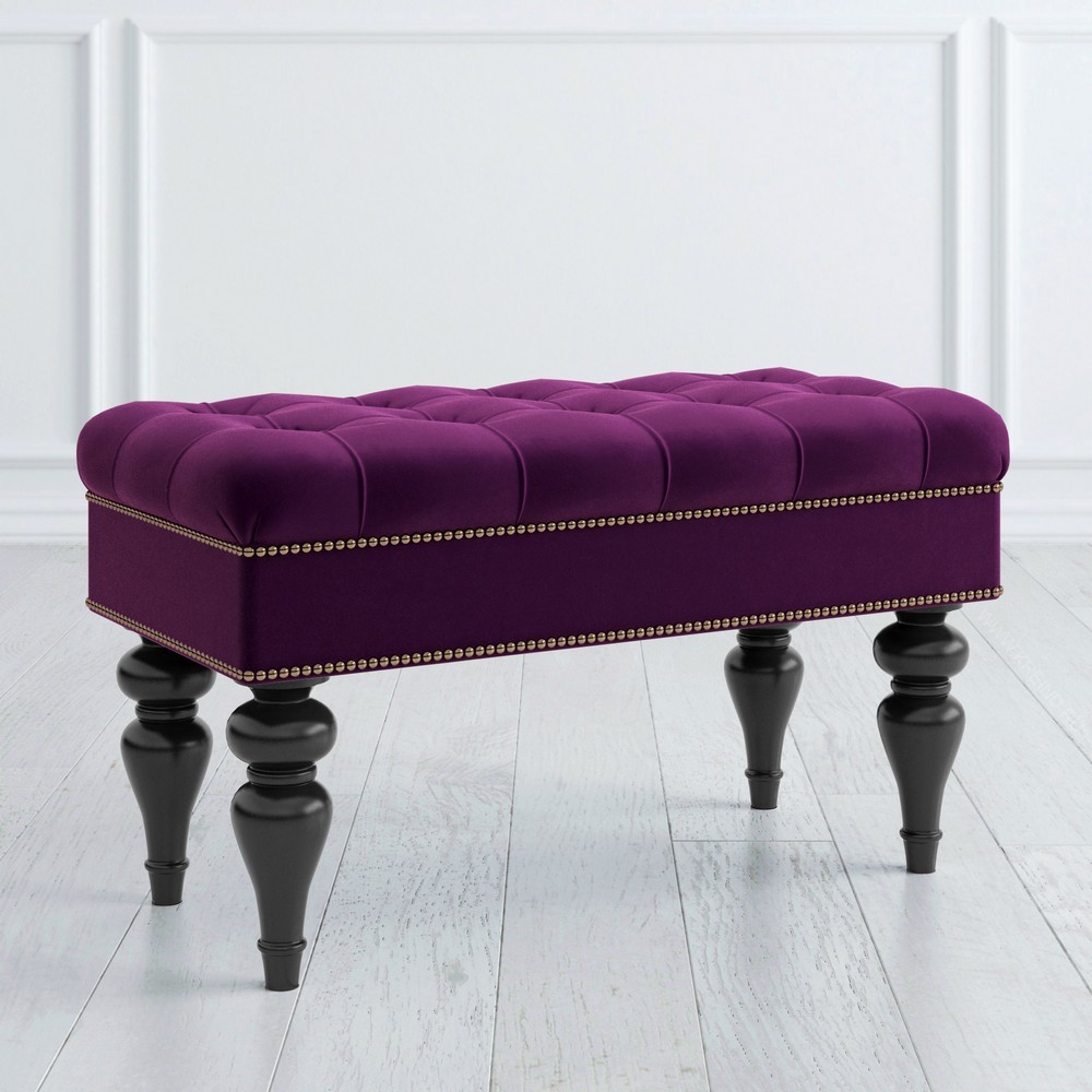 Банкетка, выполненная в стиле Прованс, идеально впишется не только в традиционный, но и современный интерьер прихожей, спальни или гостиной. Обивка из микровельвета насыщенного сиреневого цвета притягивает взгляд и прекрасно смотрится с изящными черными деревянными ножками. Корпус украшен оригинальными декоративными лентами по всему периметру в верхней и нижней части изделия. Сборка не требуется.