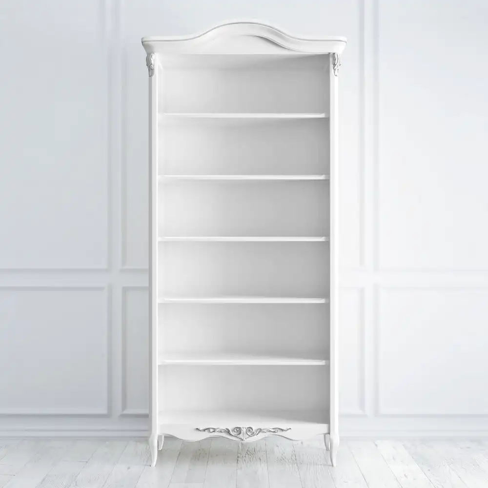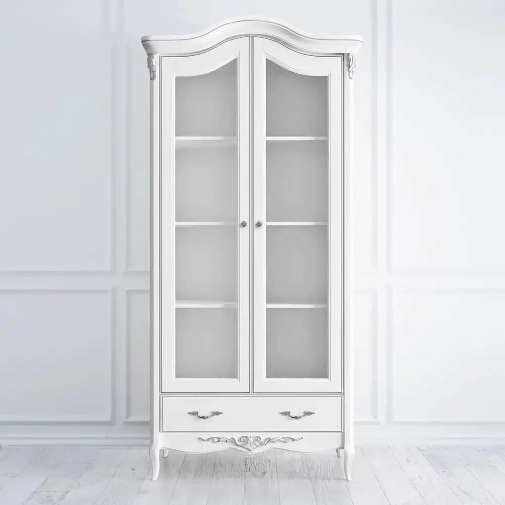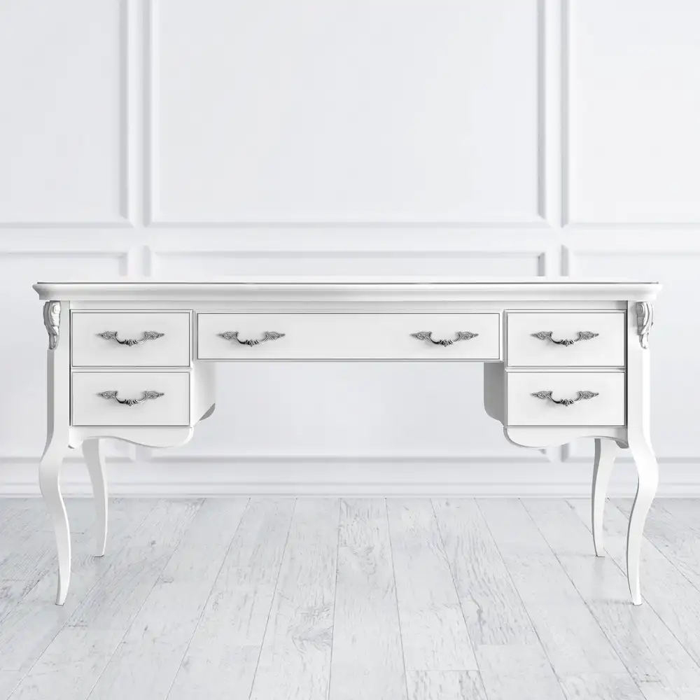 Предметы из коллекции Silvery Rome окрашиваются в белый цвет с серебряной патиной. На дверях и ящиках сделаны ручки-скобы и ручки-кнопки в виде цветочных бутонов, с состариванием. В коллекцию входит мебель для спальни, гостиной, прихожей – двухспальные кровати, прикроватные тумбы, бельевые и книжные шкафы, комоды, письменные и туалетные столы, скамьи и пуфы.