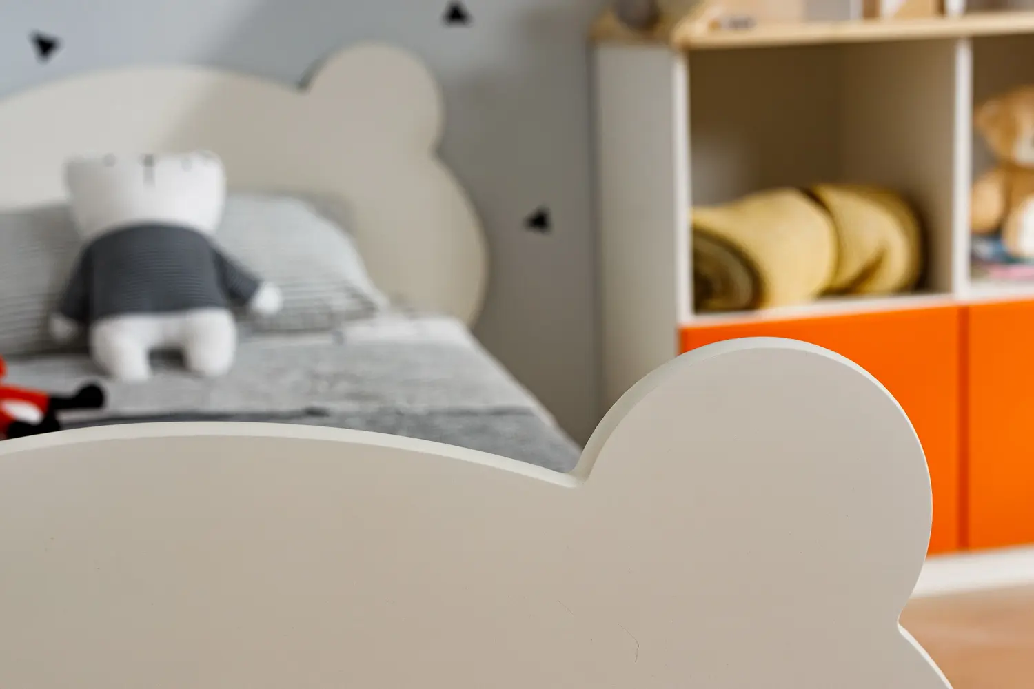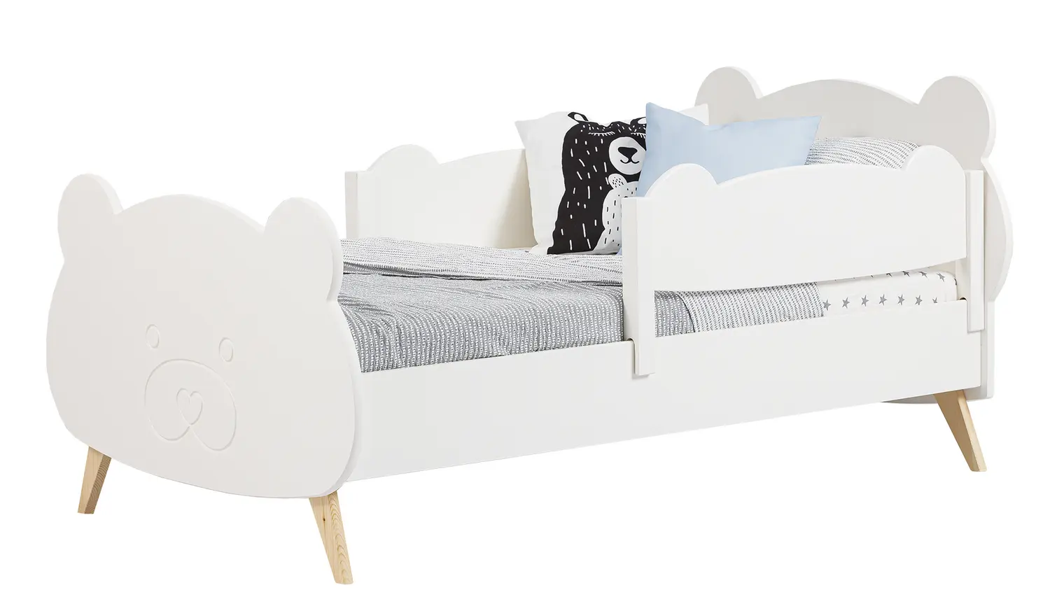 Фрезеровка в форме медвежонка украшает изножье кровати. Этот элемент придаёт кровати особый шарм и делает её ещё более привлекательной.
