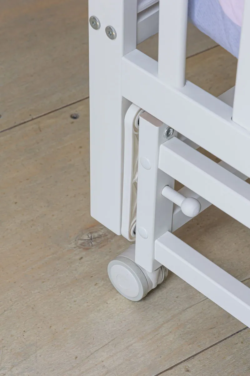 Бортики кроватки оборудованы полипропиленовыми накладками для защиты малыша и кроватки в период прорезывания зубов.