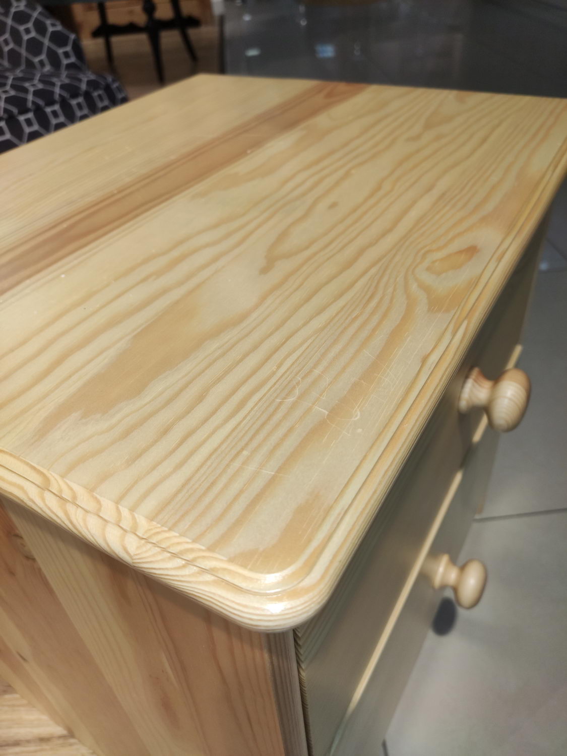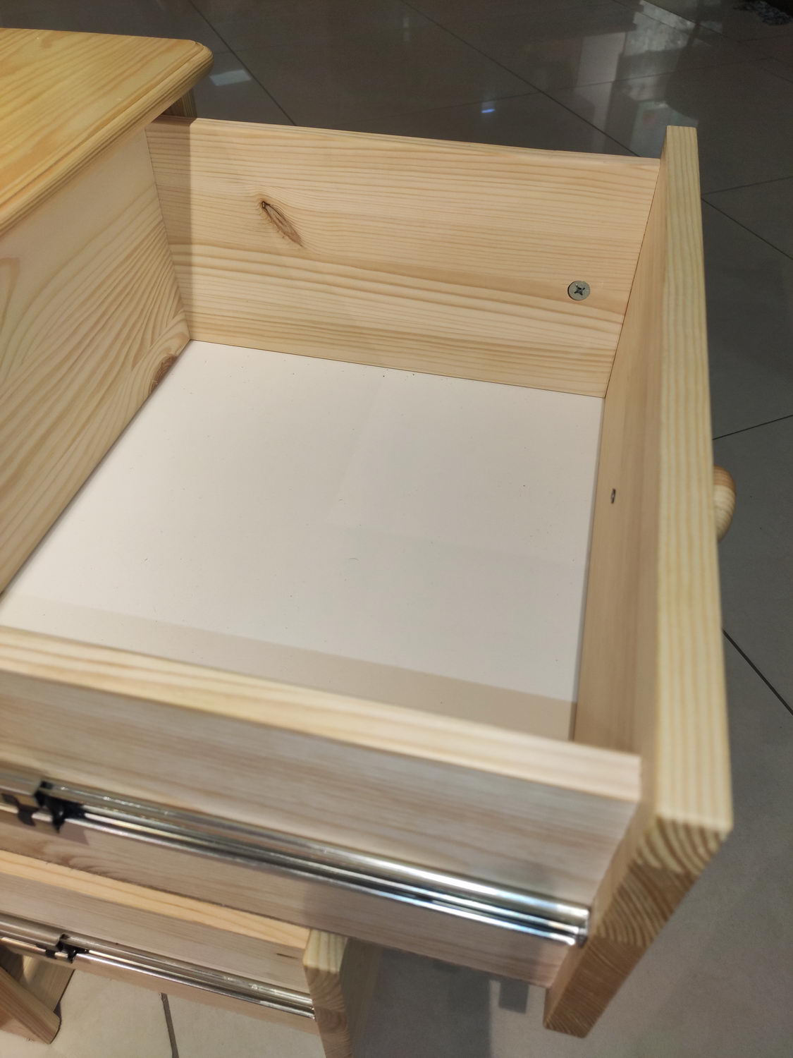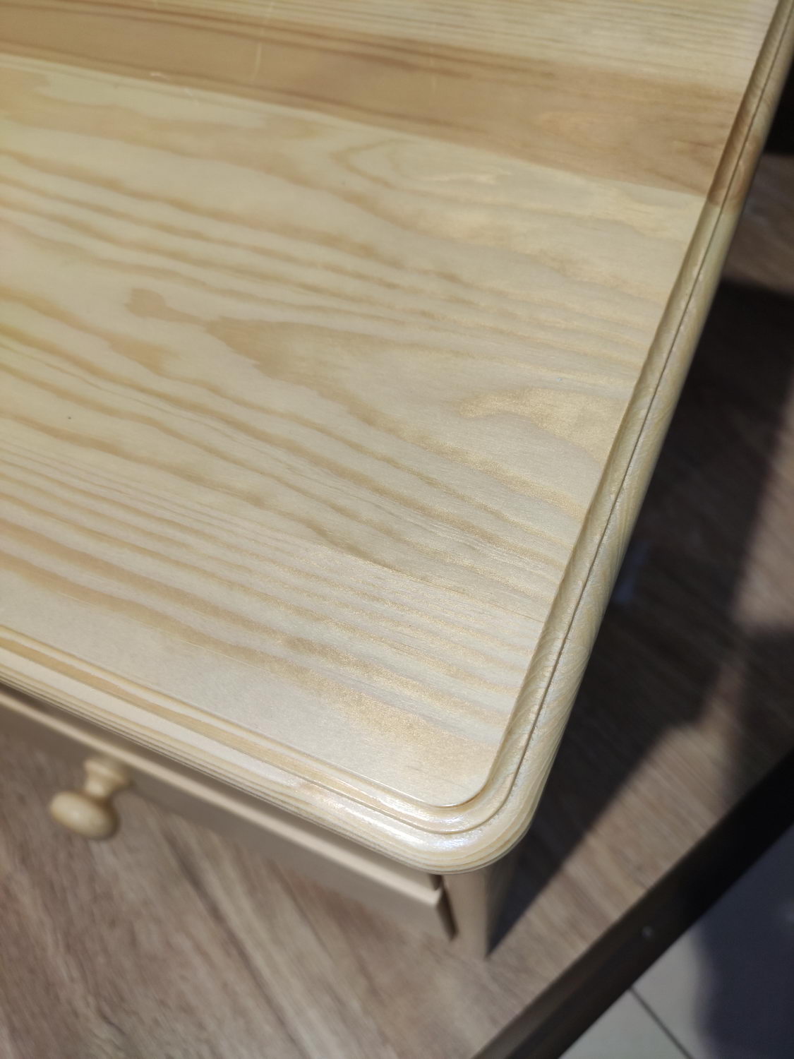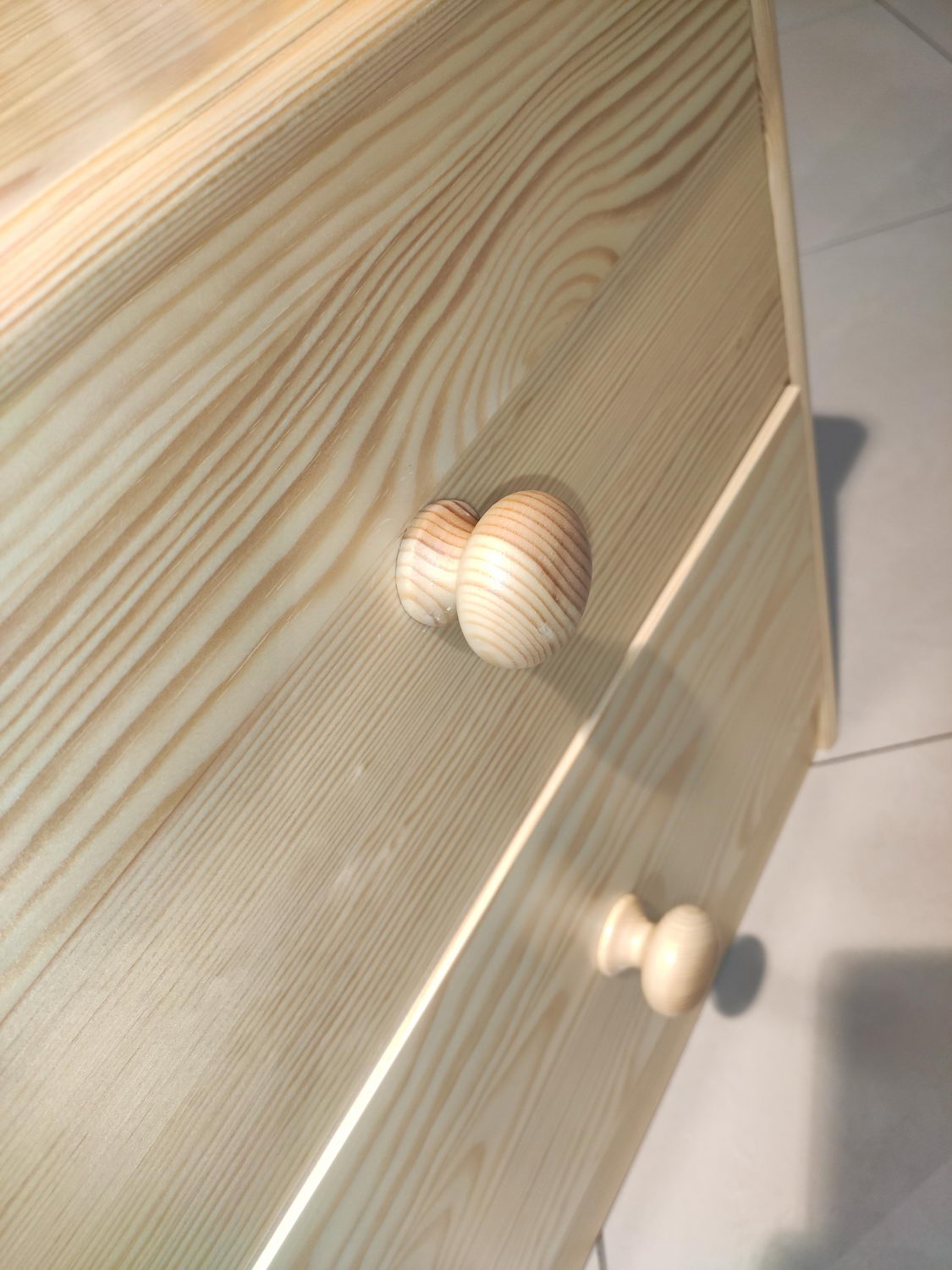Высота лицевых панелей ящика 20,5 см, внутренние боковины всех ящиков сделаны из сосны, высота 17 см. Дно ящиков изготовлено из ДВП белого цвета. Задняя стенка комода ДВП серого цвета. Роликовые направляющие частичного выдвижения выдерживают нагрузку 20 кг. Комод покрыт матовым бесцветным мебельным лаком «нц», который защищает дерево от старения и от воздействия факторов окружающей среды. В составе данного вида обработки отсутствую вредные компоненты, лак не вызывает аллергию, мебель сохраняет натуральный запах сосны. Устойчив к перепадам температуры и идеально подойдёт для загородного дома, дачи.