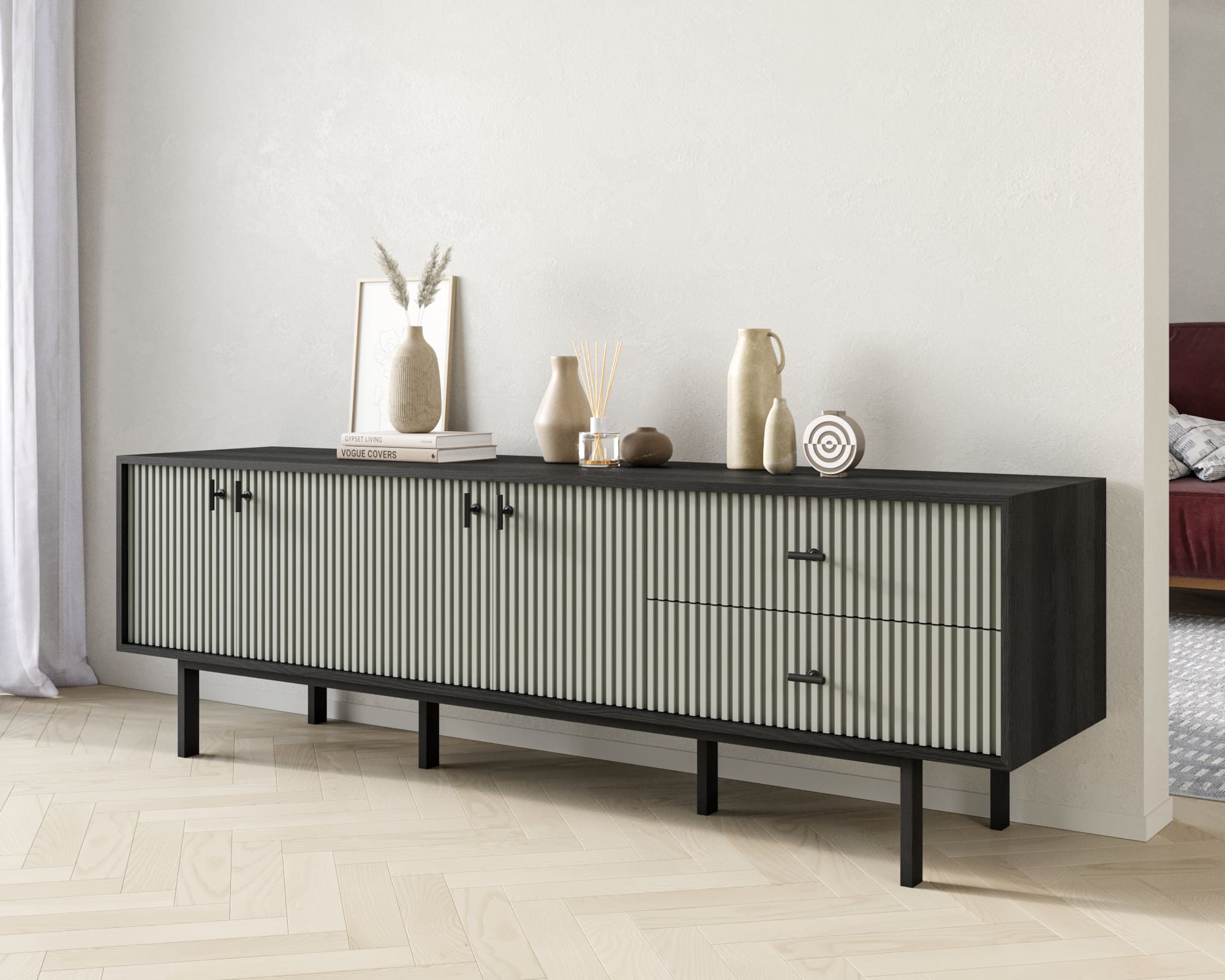 Мы предлагаем различные варианты исполнения: с фасадами или с фасадами и ящиками. Петли с доводчиком обеспечивают плавное закрывание дверей, а шариковые направляющие без доводчика позволяют легко выдвигать ящики. Комод поставляется в сборе, что упрощает его установку.