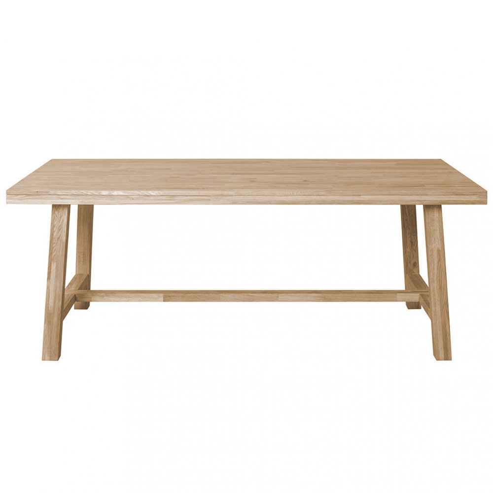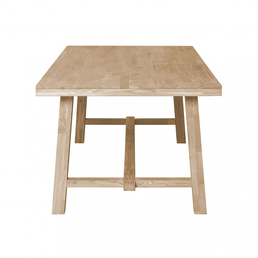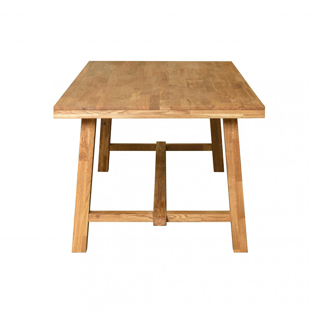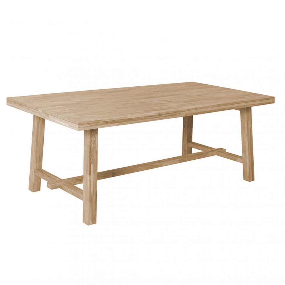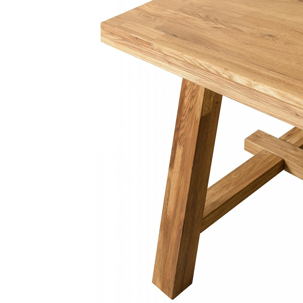 Этот стол изготовлен из натурального и долговечного материала – массива дуба. Доступно шесть вариантов отделки: бейц-масло, дуб отбеленный, дуб паркетный, дуб венге, тёмная вишня и итальянский орех. Вы можете выбрать тот вариант, который лучше всего подойдёт к вашему интерьеру. Столик имеет устойчивые массивные ножки с поперечными перекладинами. Габариты стола (ДхШхВ) 2000х1000х750 мм, вес 60 кг. Поставляется в разобранном виде. Гарантия на стол составляет 1 год.