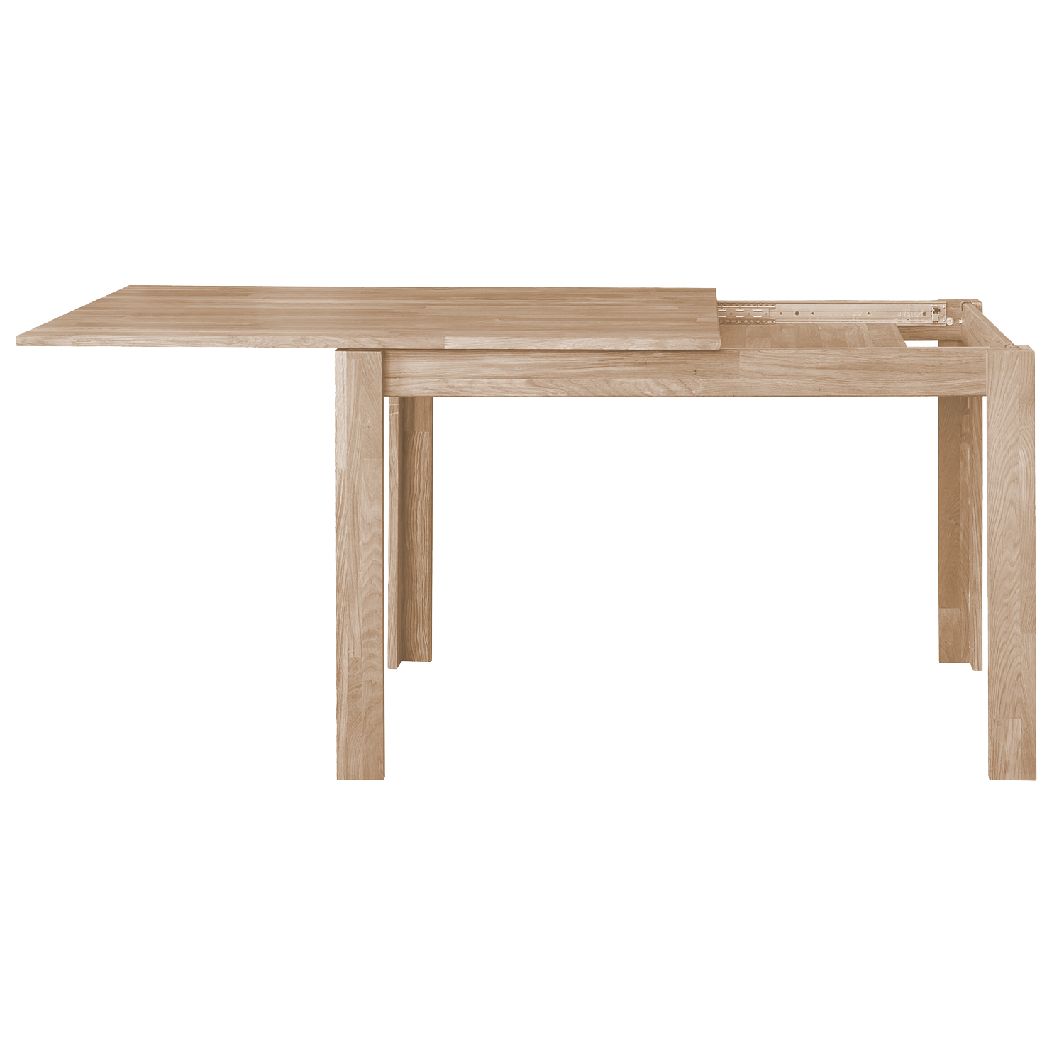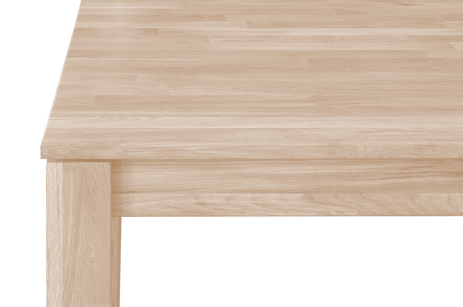 Раздвижной стол изготовлен из натурального и долговечного материала – массива дуба. Доступно шесть вариантов отделки: бейц-масло, дуб отбеленный, дуб паркетный, дуб венге, тёмная вишня и итальянский орех. Вы можете выбрать тот вариант, который лучше всего подойдёт к вашему интерьеру. Стол имеет устойчивые L-образные ножки.