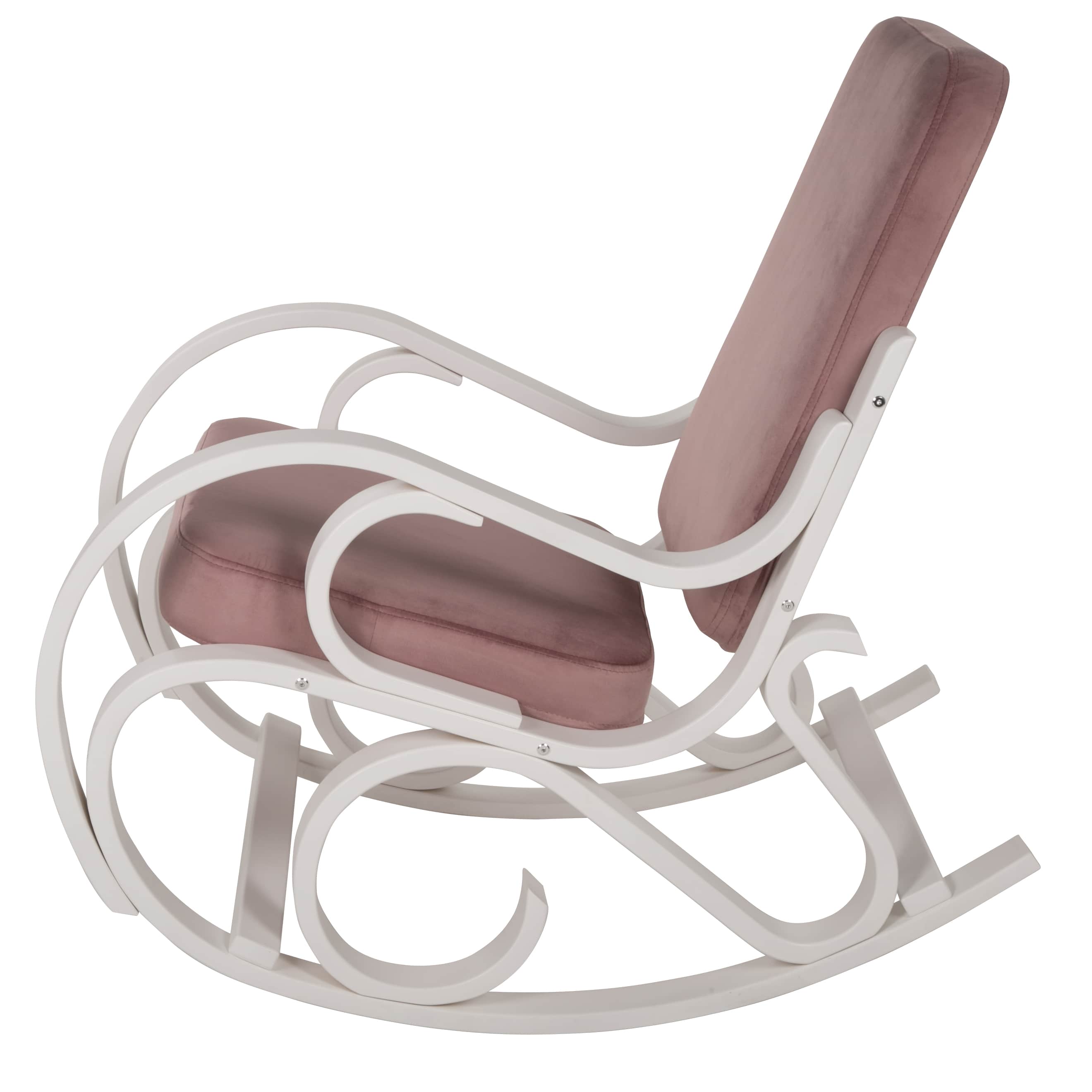 Кресло-качалка с тканевой обивкой цвета Пудровый и каркасом цвета Белый